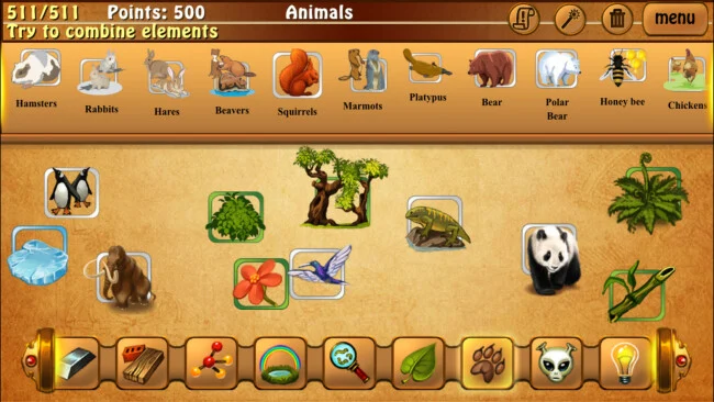 classical alchemy is an addictive puzzle game that challenges you to create animals, dinosaurs, machines and much more by combining basic elements. Based on the four fundamental components of nature (fire, water, earth and air), this game takes you on a journey through the history and invention of humanity, from simple tools to advanced technology. As you play, you’ll explore the logical relationships between elements, mixing and matching them to discover new creations and unlock the secrets behind the true nature of all things. This brain teaser invites players to improve their puzzle-solving skills while experiencing a unique sense of discovery and creativity. Gameplay focuses on combining existing elements to form new ones, encouraging thoughtful associations and experimentation. With 507 puzzles available in Mission mode, Alchemy Classic offers a satisfying progression that reflects evolution itself, spanning from bacteria to mammals and from primitive tools to futuristic and extraterrestrial technology. The game supports 18 languages and is free of microtransactions, providing a complete experience without interruptions. Whether you’re a casual player or a puzzle enthusiast, Alchemy Classic offers an immersive and rewarding challenge that allows you to become a true explorer and creator in the world of elements.