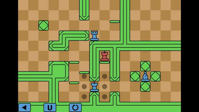 Chessformer is a grid-based puzzle platformer with chess pieces. Each of the pieces moves as expected, but they fall after moving and cannot move again until they stop falling. The pieces also stack on top of each other, which is key to solving most levels. The goal of each level is to capture the opposing king, who is lazy and never moves, so don’t worry about losing any pieces.