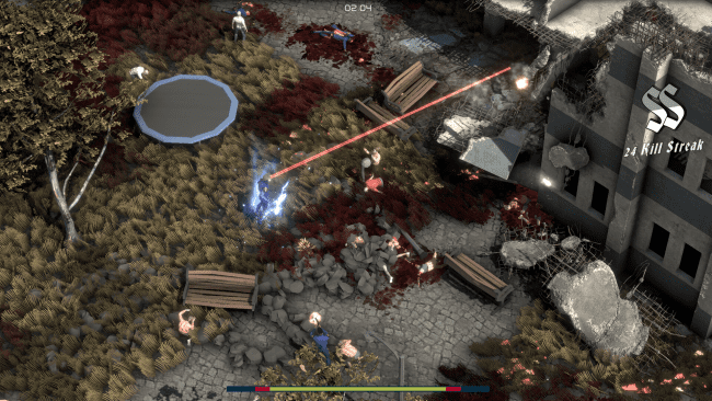 Train in the simulation room to master your superpowers and prepare to conquer humanity. Your superpowers not only include laser eyes, but also flight, high-speed running, super strength, and a variety of melee and ranged attacks. Master combat and reach high style ranks by mixing attacks and combos. You are the strongest thing in the simulation, everything else can be destroyed, exploded or dismembered for those sweet slow motion moments. Don’t let your guard down, the simulation is full of armed enemies and unique bosses. Each boss has its own weak points and tactics, practice their patterns to survive until the end. If you’re skilled, you can beat the simulation without getting hit once, but misjudging a move or not reacting quickly enough can result in you getting stuck and disconnected from the simulation.