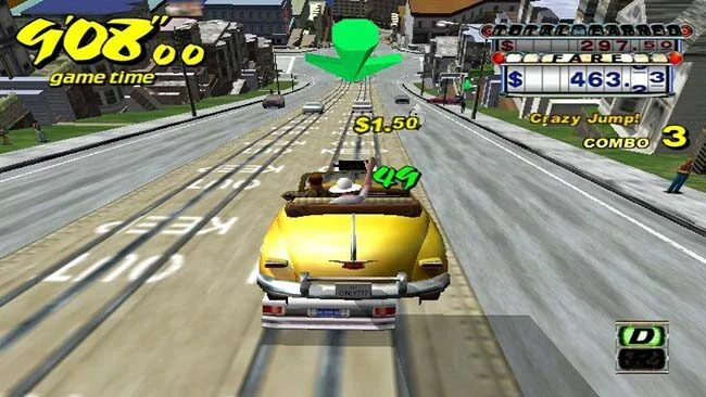 Crazy Taxi is an arcade racing game where the player takes on the role of a taxi driver making his way through busy streets, sidewalks and even underwater, in a wild and frenetic race to deliver passengers on time. The routes take place largely within cities full of general traffic and pedestrians (who cannot be run over, they move away). The main objective is to get as many customers as possible to their destination on time. Available customers are marked by circles and the color represents distance and rate.
