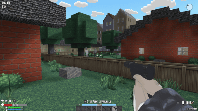 - WORLD: A large procedurally generated city awaits you, full of zombies and loot. Each block can be broken, you can build a building or tear one down.