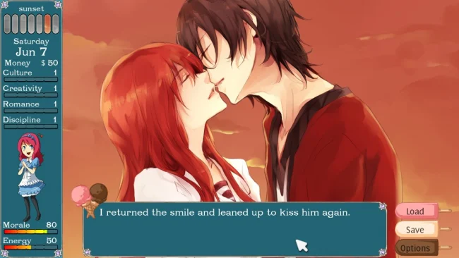 - Sistema de relaciones: cada personaje tiene un valor de relación que afecta el juego.