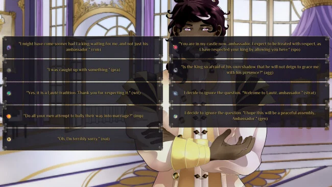 Ambientado en un mundo donde se veneran las estrellas, coronas celestiales te invita a encarnar al nuevo monarca gobernante del reino de Lauté. En la antigüedad, los miembros de la realeza eran venerados como maestros elementales con hechizos tan poderosos que parecían divinos. Hoy en día, este poder prácticamente ha desaparecido debido a su mal uso, y sólo el rey Aalam de Andrómeda conserva su magia divina. Tras el reciente asesinato de tu padre, tu reino se encuentra en un terreno inestable cuando este formidable rey te da un ultimátum: acepta su mano en matrimonio o enfrenta la guerra. Esta narrativa basada en una historia combina un rico desarrollo de personajes con mecánicas de creación de estadísticas, lo que te permite moldear la personalidad de tu monarca a través de nueve rasgos distintivos. Tus decisiones no sólo influyen en la trama sino también en tu afinidad mágica (elegir entre hielo, fuego, tierra o relámpago) y abren múltiples caminos para explorar. En Celestial Crowns, la personalización es clave. Puedes nombrar a tu personaje, seleccionar un tipo de cuerpo masculino o femenino y elegir tus pronombres preferidos, creando un monarca que refleje tu visión. El juego presenta más de 240.000 palabras de contenido, incluidas tres rutas románticas con tramas únicas y más de 60.000 palabras de material nuevo por ruta. Cada interés amoroso ofrece una experiencia diferente, con nuevas ubicaciones y personajes por descubrir. Con hasta nueve finales y más de 18 escenas opcionales, la rejugabilidad es alta, ya que tus elecciones desbloquean varias opciones narrativas y resultados. El juego está enriquecido con impresionantes efectos visuales, que incluyen 20 imágenes CG detalladas y una banda sonora cautivadora. Ya sea que estés buscando intriga política, dominio mágico o romance, Celestial Crowns te desafía a mantener tu reino a flote y encontrar el amor en medio del caos.