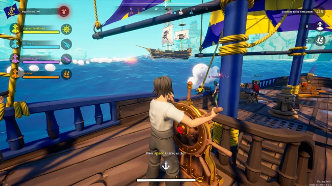 Notre mode de jeu Battle Royale offre une vision unique du genre. Profitez d’une combinaison dynamique de cape et d’épée sur terre et de batailles navales épiques ! Coulez toutes les autres équipes pour sortir victorieux. Vous en avez marre du pillage ? Aucun problème! Plongez directement dans l’action dans notre nouveau mode de jeu Galleon Conquest. Vivez des batailles secondaires dignes d’un film avec le Galion ! Détruisez les pirates, coulez d’autres navires et capturez des drapeaux pour gagner ! Une partie du navire, une partie de l’équipage. Qui aurait cru qu’être un pirate nécessitait vraiment un travail d’équipe ? Eh bien, c’est le cas ! Avec vos coéquipiers, vous devrez diriger, réparer et réapprovisionner votre navire tout en assiégeant les équipages ennemis. La communication et la coopération sont essentielles pour assurer une victoire ! Une variété de types de navires offrent des styles de jeu très différents pour votre équipage. Le Brigantin est le classique, avec une coque capable de résister aux coups et une grande puissance de feu. Le Junk Ship est plus petit, plus rapide et dispose d’un canon frontal pour des assauts frontaux audacieux ! Et le Bomb Vessel est particulièrement puissant à longue portée grâce à son canon à mortier unique. Changez votre style de jeu en fonction des armes que vous récupérez. Dirigez-vous vers le nid de pie avec votre fidèle tireur d’élite ou montez à bord d’un navire ennemi avec la légendaire épée de la mer qui vole la vie ! Aimez-vous quelque chose de plus explosif? Essayez le canon à épaule ou le lanceur de poisson. A chacun son truc !