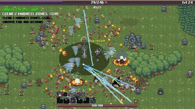 - Jeu de survie de horde Roguelite avec système de progression RPG ;