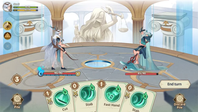 Você não terá mais muita dor de cabeça tendo que controlar muitos personagens e enfrentar muitos oponentes, apenas concentre-se nas cartas que tem na mão e tome decisões perfeitas nos eventos que encontrar pelo caminho. Convoque e complete sua coleção de deuses. O sistema de classes determina o baralho que você carrega, e as habilidades que você aprende ao longo do caminho lhe darão a liberdade de criar uma infinidade de combinações.