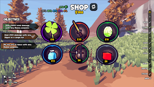 Aproveite os benefícios que você obtém! Essas vantagens fortalecem uma determinada categoria de armas ou proporcionam uma vantagem geral ao jogador, como maior sorte nas compras. Você os obtém a cada três lutas, comprando sacos de saque na loja, abrindo baús de tesouro e completando objetivos!