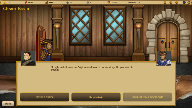 Como rei, você pode participar de torneios e ganhar prêmios para impressionar as mulheres. Ir para a guerra? Estabeleça uma estratégia de batalha. Você quer acabar com o poder militar de outro reino? Envie seus espiões e esmague-os por dentro. Enfraqueça e destrua-os.