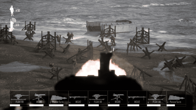 Beach Invasion 1944, oyuncunun sahil tahkimatlarını, konumlarına birlikler, tanklar, uçaklar ve daha fazlasıyla saldıracak işgalci güçlere karşı savunduğu bir 2. Dünya Savaşı FPS oyunudur. MG42, Flak88 ve Panzers gibi çeşitli ikonik ve otantik İkinci Dünya Savaşı silahlarını kullanın. Mayınlar, patlayıcı toplar, topçu saldırıları ve silah yükseltmeleriyle ek savunma alın! Beach Invasion 1944, atari tarzı nişancı oyunlarına bir doz FPS gerçekçiliği katıyor. Oyuncu, Avrupa’nın Atlantik Duvarı’nı savunmak için makineli tüfekler ve top taretlerini çalıştıran bir Mihver askerinin rolünü üstleniyor. Bu muazzam amfibi ve hava operasyonu sırasında oyuncunun görevi, çeşitli makineli tüfekler, Flak ve Panzer yuvaları ve tedarik teslimatlarından elde edilen bonusları kullanarak mümkün olduğunca çok sayıda işgalci kuvveti yok etmektir. En sevdiğiniz 2. Dünya Savaşı filmleri ve televizyon dizilerinden destansı ve unutulmaz anları yeniden yaşamanızı sağlayacak gerçekçi sesler ve özel efektlerle sürükleyici bir 2. Dünya Savaşı ortamında yoğun aksiyon. Değişen hava şartlarına göre gece ve gündüz aralıksız deniz ve hava saldırılarıyla aralıksız aksiyon. Deniz piyadeleri, paraşütçüler, bazukalar, alev silahları, saldırı gemileri, cipler, tanklar, zırhlı araçlar, yarı paletliler, savaşçılar, bombardıman uçakları ve daha fazlasını içeren çok çeşitli düşmanlar! Düşmanlarınıza topçu saldırıları ve yağmur yağdırma yeteneği. Zehirli gaz, zırh delici, patlayıcı ve yanıcı mühimmat dahil olmak üzere silahlarınıza geçici yükseltmeler kazandırmak.